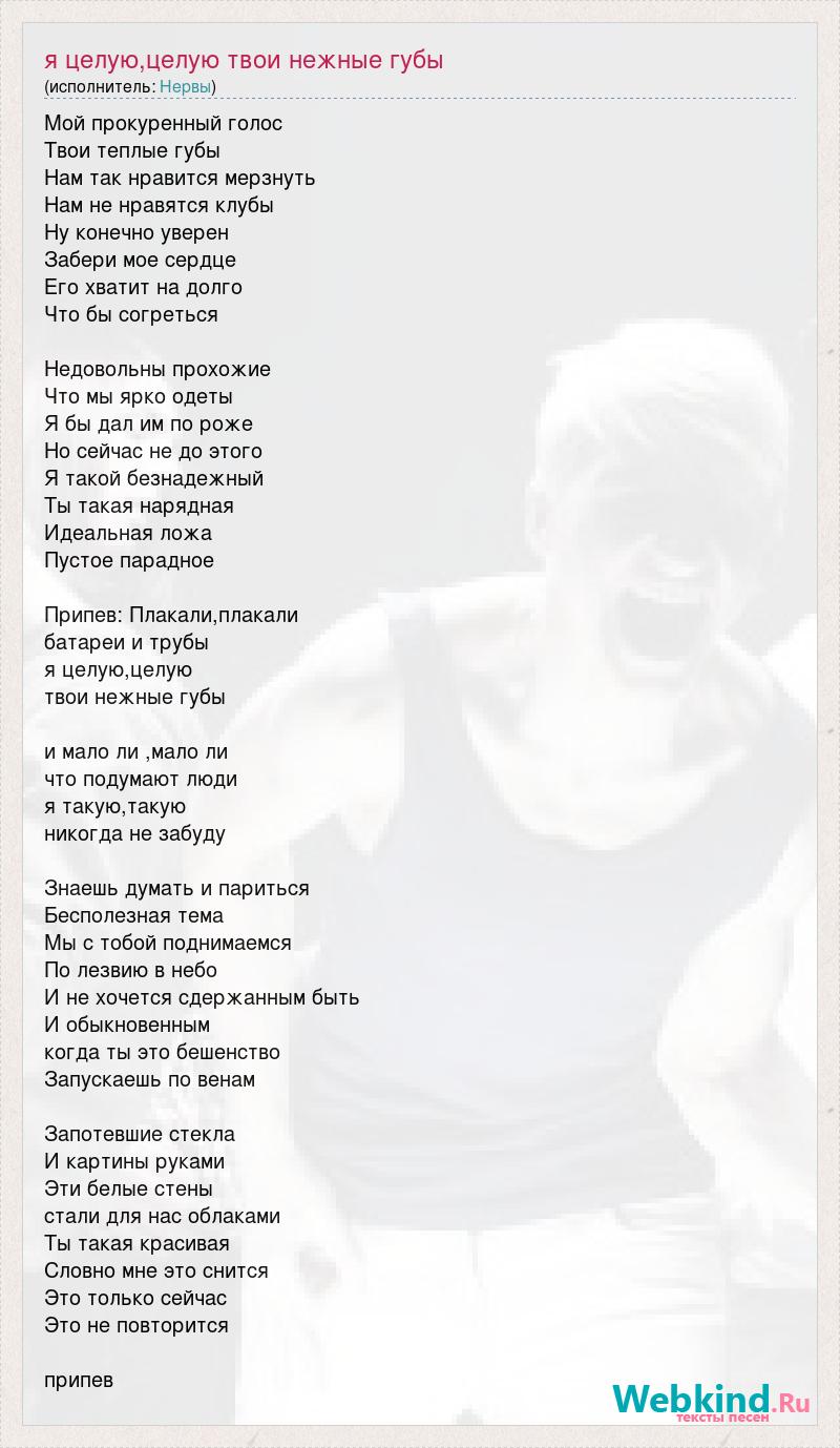 Мой прокуренный голос Твои теплые губы Нам так нравится мерзнуть Нам не нравятся клубы Ну конечно уверен Забери мое сердце Его хватит на долго Что бы согреться Недовольны прохожие Что мы ярко одеты Я бы дал им по роже Но сейчас не до этого Я такой безнадежный Ты такая нарядная Идеальная ложа Пустое парадное Припев: Плакали,плакали батареи и трубы я целую,целую твои нежные губы и мало ли ,мало ли что подумают люди я такую,такую никогда не забуду Знаешь думать и париться Бесполезная тема Мы с тобой поднимаемся По лезвию в небо И не хочется сдержанным быть И обыкновенным когда ты это бешенство Запускаешь по венам Запотевшие стекла И картины руками Эти белые стены стали для нас облаками Ты такая красивая Словно мне это снится Это только сейчас Это не повторится припев