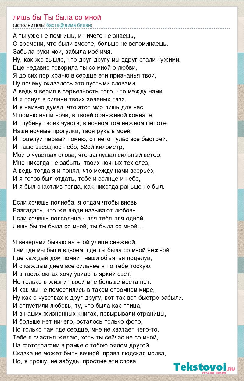А ты уже не помнишь, и ничего не знаешь, О времени, что были вместе, больше не вспоминаешь. Забыла руки мои, забыла моё имя. Ну, как же вышло, что друг другу мы вдруг стали чужими. Еще недавно говорила ты со мной о любви, Я до сих пор храню в сердце эти признанья твои, Ну почему оказалось это пустыми словами, А ведь я верил в серьезность того, что между нами. И я тонул в сияньи твоих зеленых глаз, И я наивно думал, что этот мир лишь для нас, Я помню наши ночи, в твоей оранжевой комнате, И глубину твоих чувств, в ночном том нежном шёпоте. Наши ночные прогулки, твоя рука в моей, И поцелуй первый помню, от него пульс все быстрей. И наше звездное небо, 52ой километр, Мои о чувствах слова, что заглушал сильный ветер. Мне никогда не забыть, твоих ночных тех слез, А ведь тогда я и понял, что между нами всерьёз, И я готов был отдать, тебе и солнце и небо, И я был счастлив тогда, как никогда раньше не был. Если хочешь полнеба, я отдам чтобы вновь Разгадать, что же люди называют любовь.. Если хочешь полсолнца,- для тебя для одной, Лишь бы ты была со мной, ты была со мной… Я вечерами бываю на этой улице снежной, Там где мы были вдвоем, где ты была со мной нежной, Где каждый дом помнит наши объятья поцелуи, И с каждым днем все сильнее я по тебе тоскую. И в твоих окнах хочу увидеть яркий свет, Но только в жизни твоей мне больше места нет. И как мы не поместились в таком огромном мире, Ну как о чувствах к друг другу, вот так вот быстро забыли. И отпустили любовь, ту, что была как птица, И в наших жизненных книгах, повырывали страницы, И больше нет ничего, осталось только фото, Но только там где сердце, мне не хватает чего-то. Тебе я счастья желаю, хоть ты сейчас не со мной, На фотографии в рамке с тобою рядом другой, Сказка не может быть вечной, права людская молва, Но, я прошу, не забудь, простые эти слова.