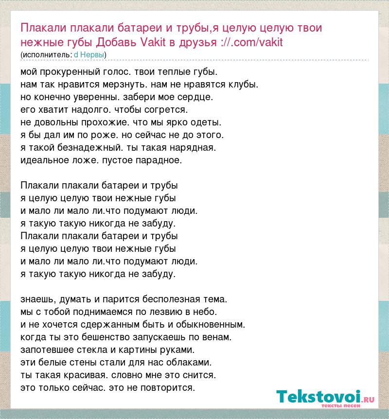 Плакали плакали батареи и трубы,я целую целую твои нежные губы Добавь Va