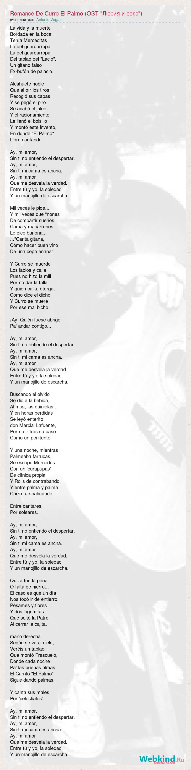 А как ты думаешь, о чем песня "Romance De Curro El Palmo (OST "Люсия и секс")" ?