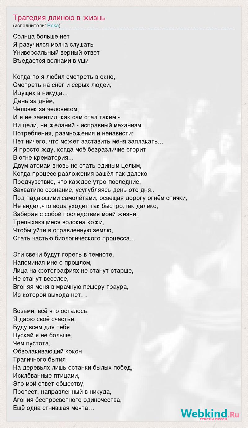 А как ты думаешь, о чем песня "Трагедия длиною в жизнь" ?