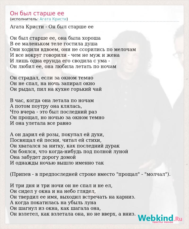 А как ты думаешь, о чем песня "Он был старше ее" ?