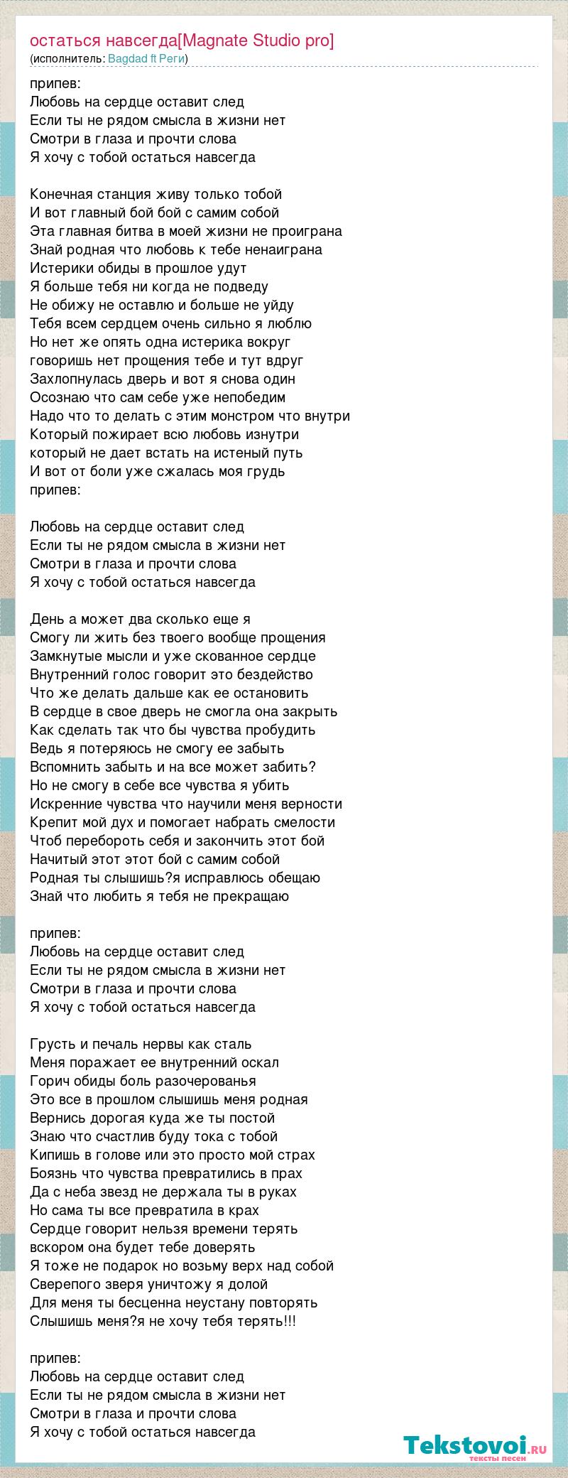 А как ты думаешь, о чем песня "Остаться навсегда[Magnate Studio pro]" ?