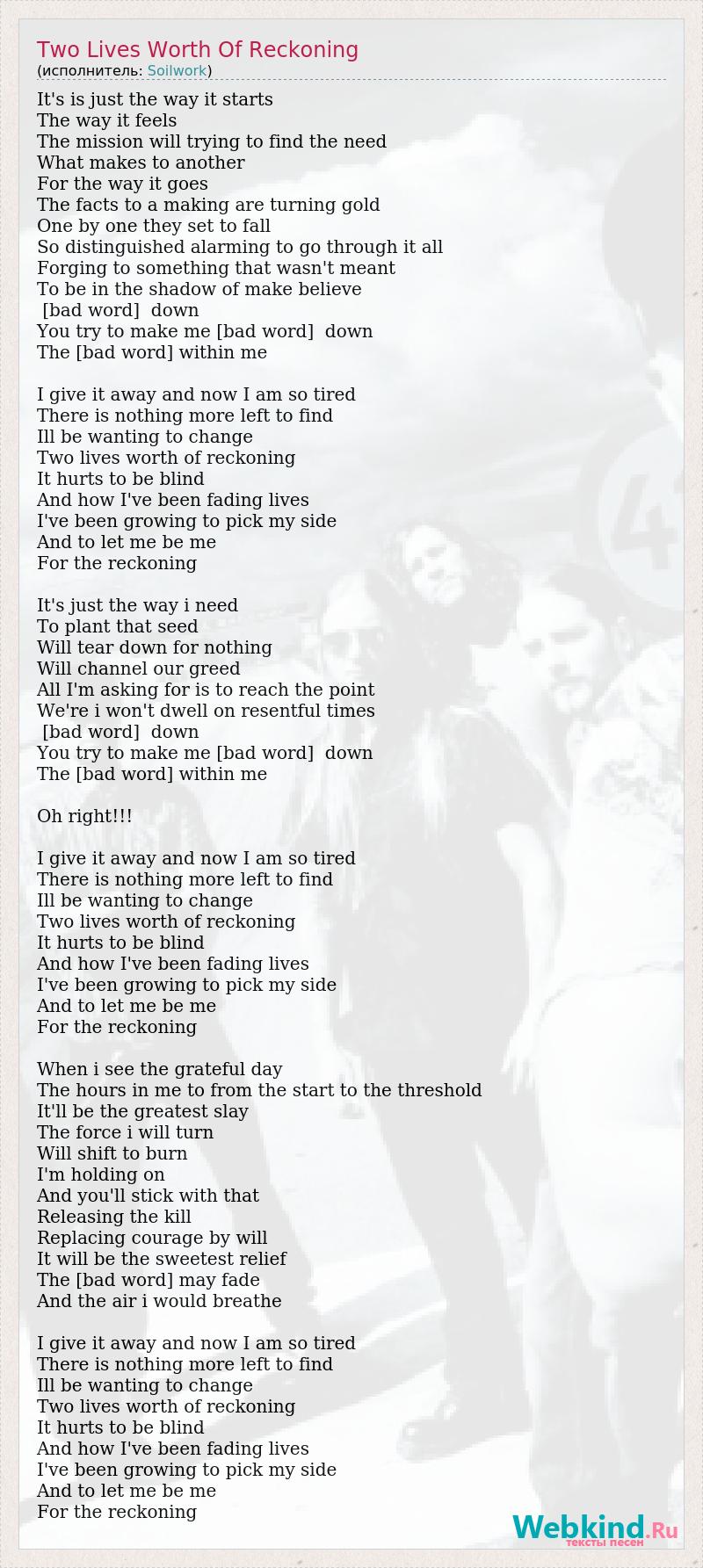 А как ты думаешь, о чем песня "Two Lives Worth Of Reckoning" ?
