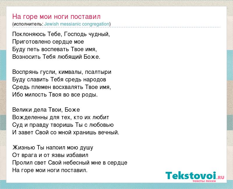 А как ты думаешь, о чем песня "На горе мои ноги поставил" ?