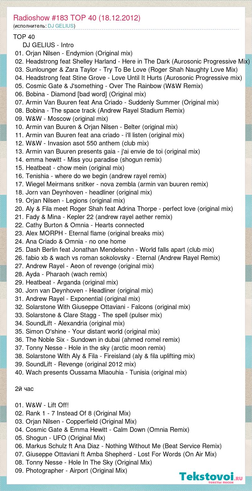 А как ты думаешь, о чем песня "Radioshow #183 TOP 40 (18.12.2012)" ?