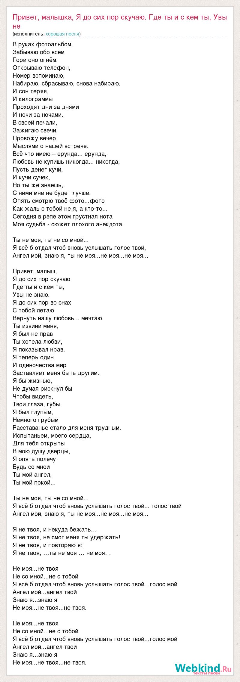 Привет, малышка, Я до сих пор скучаю. Где ты и с кем ты, Увы не