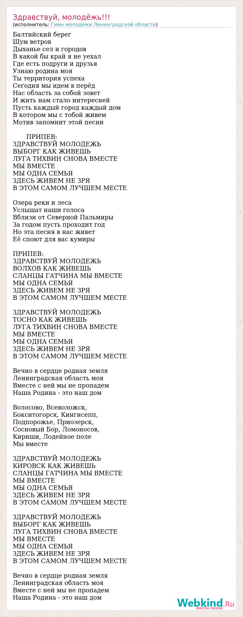 А как ты думаешь, о чем песня "Здравствуй, молодёжь!!!" ?