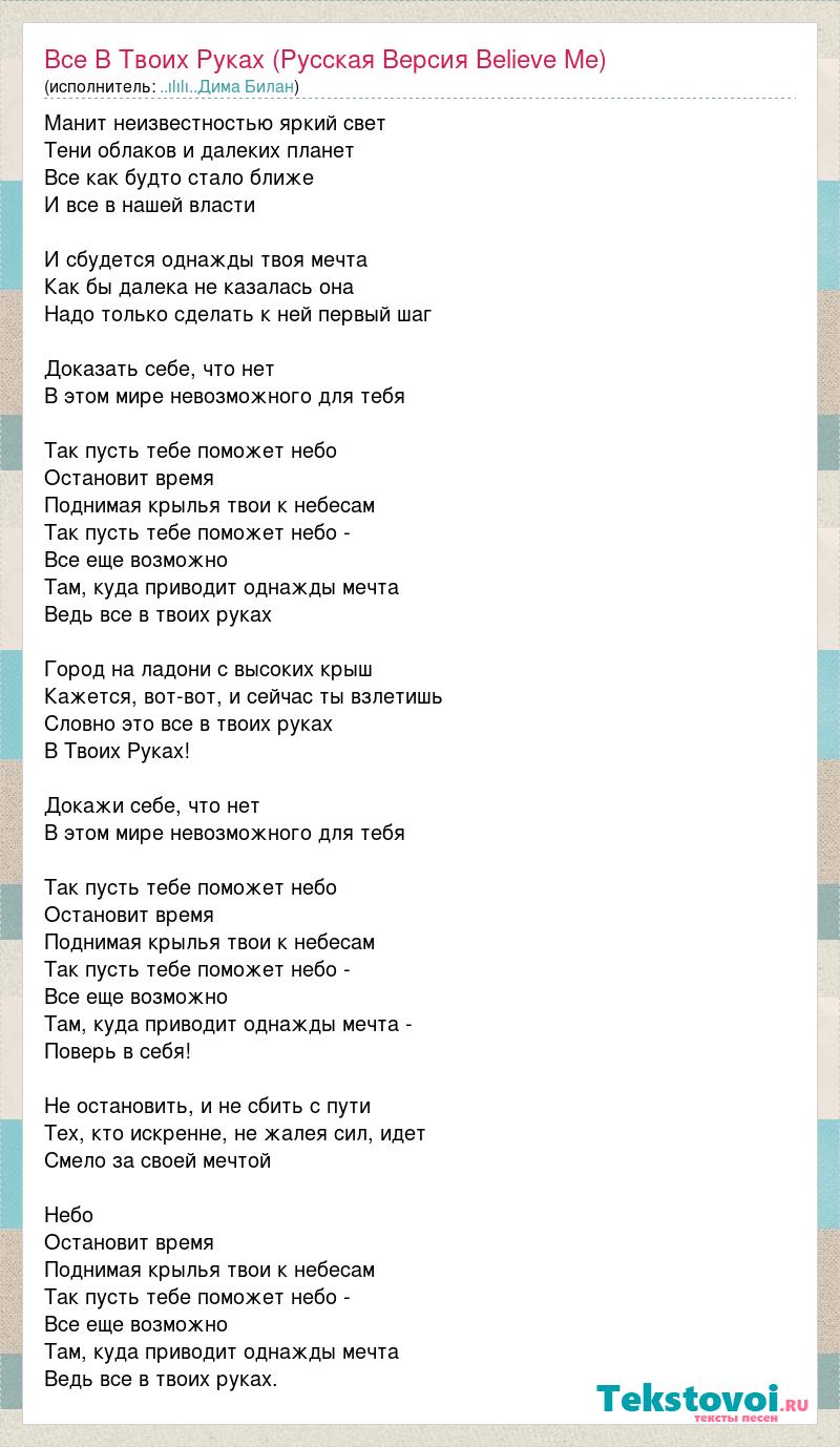 Все В Твоих Руках (Русская Версия Believe Me)