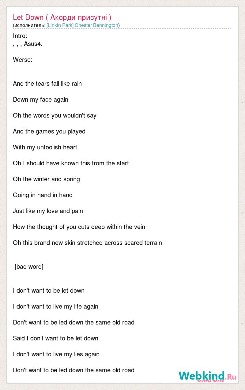 А как ты думаешь, о чем песня "Let Down ( Акорди присутні )" ?