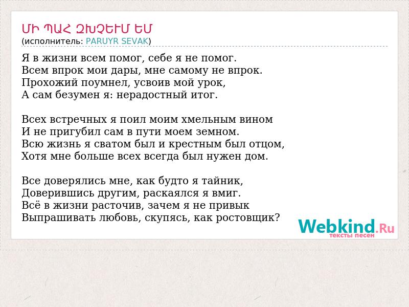 А как ты думаешь, о чем песня "ՄԻ ՊԱՀ ԶԽՉԵՒՄ ԵՄ" ?