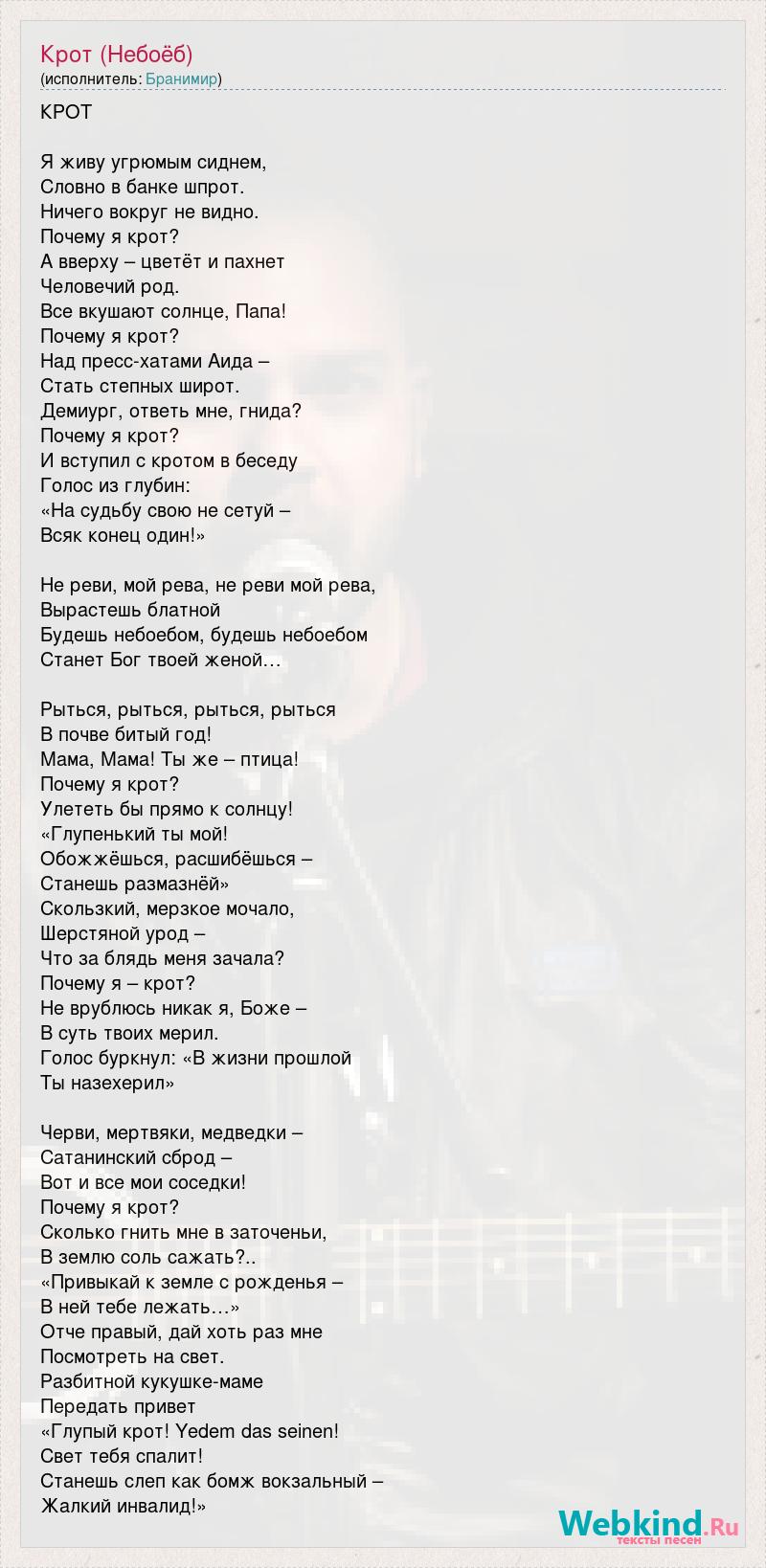 А как ты думаешь, о чем песня "Крот (Небоёб)" ?