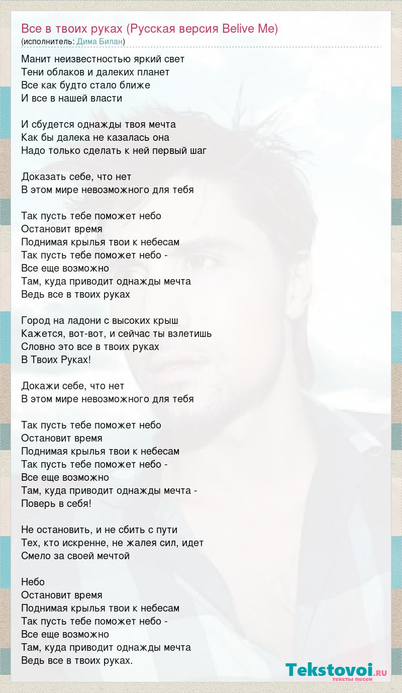 Все в твоих руках (Русская версия Belive Me)