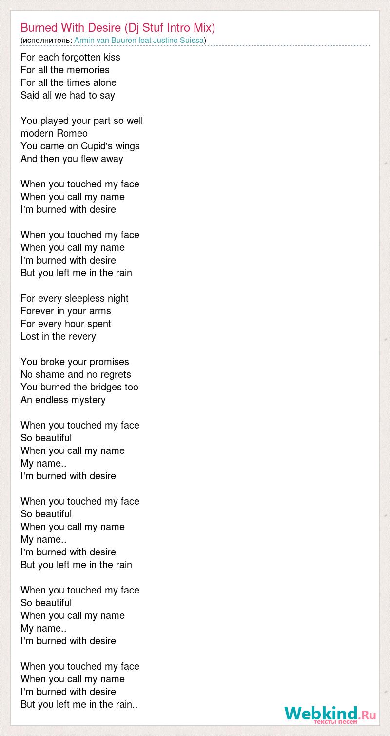 А как ты думаешь, о чем песня "Burned With Desire (Dj Stuf Intro Mix)" ?