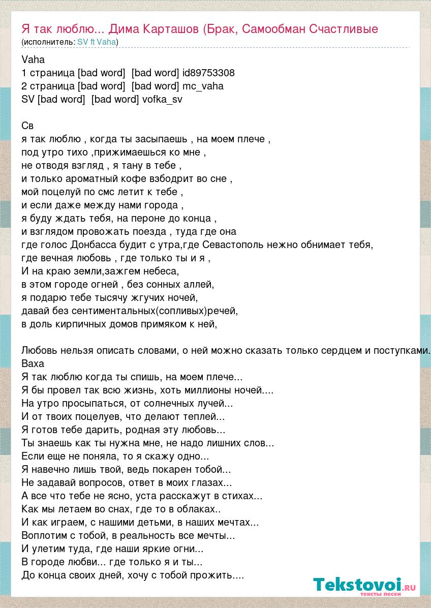 Главная→Исполнители→SV ft Vaha→Я так люблю... Дима Карташов (Брак, Самообман Счастливые бывшим не пишут, Давай