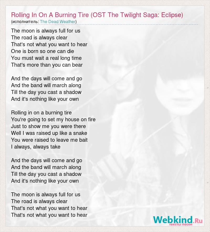 А как ты думаешь, о чем песня "Rolling In On A Burning Tire (OST The Twilight Saga: Eclipse)" ?
