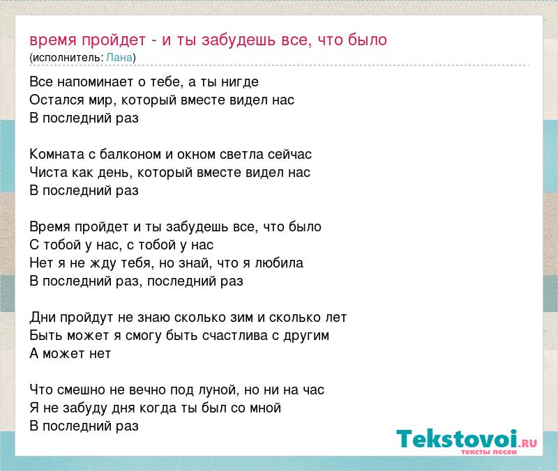 Время пройдет - и ты забудешь все, что было