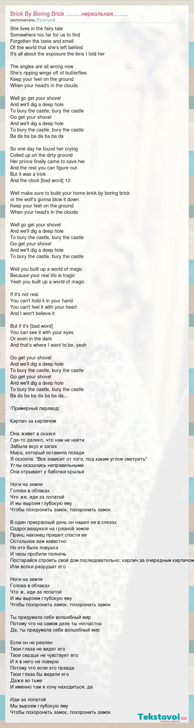 А как ты думаешь, о чем песня "Brick By Boring Brick .........нереальная........." ?