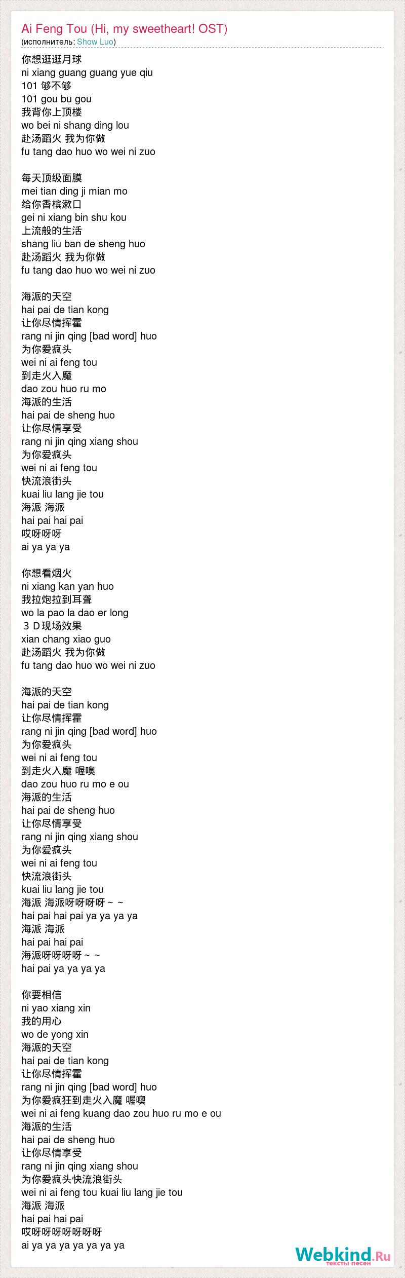 А как ты думаешь, о чем песня "Ai Feng Tou (Hi, my sweetheart! OST)" ?