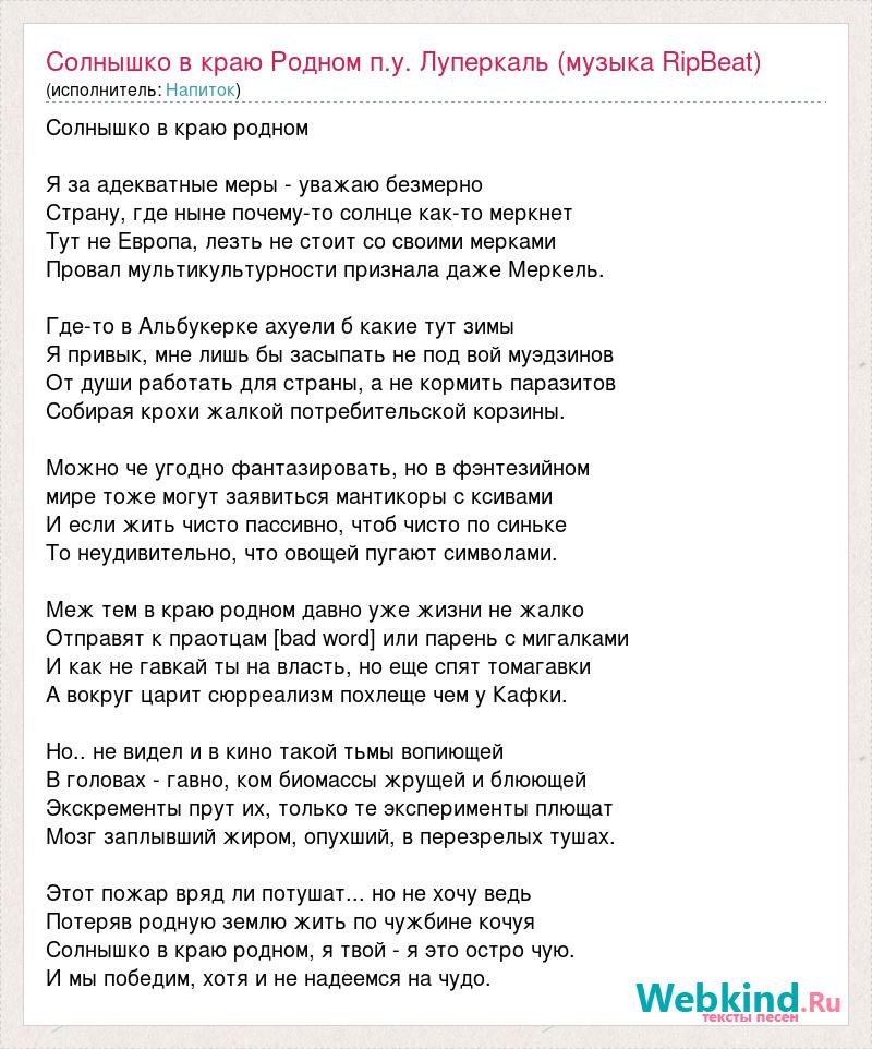 А как ты думаешь, о чем песня "Солнышко в краю Родном п.у. Луперкаль (музыка RipBeat)" ?