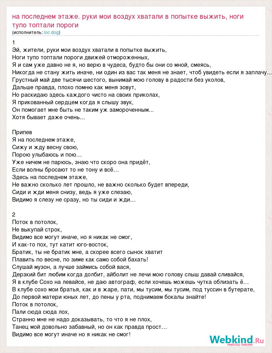Главная→Исполнители→Loc dog→На последнем этаже. руки мои воздух хватали в попытке выжить, ноги тупо топтали