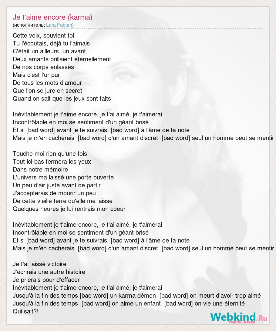 А как ты думаешь, о чем песня "Je t'aime encore (karma)" ?
