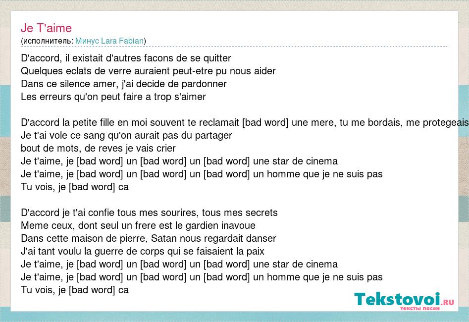 А как ты думаешь, о чем песня "Je T'aime" ?