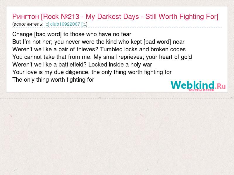 А как ты думаешь, о чем песня "Рингтон [Rock №213 - My Darkest Days - Still Worth Fighting For]" ?