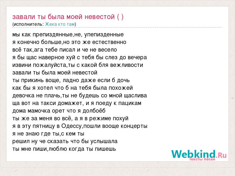 А как ты думаешь, о чем песня "Завали ты была моей невестой ( )" ?