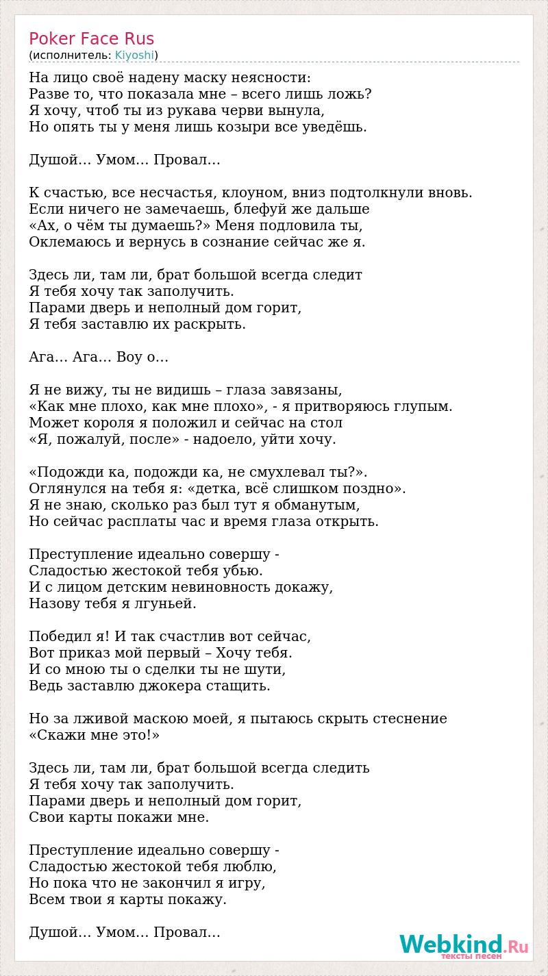 А как ты думаешь, о чем песня "Poker Face Rus" ?