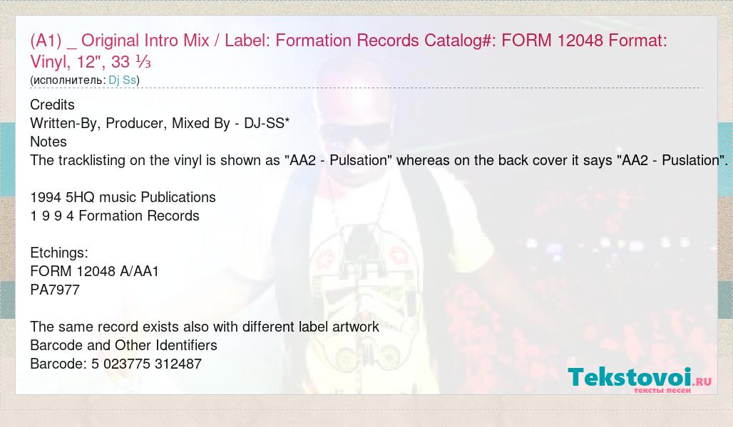 А как ты думаешь, о чем песня "(A1) _ Original Intro Mix / Label: Formation Records Catalog#: FORM 12048" ?