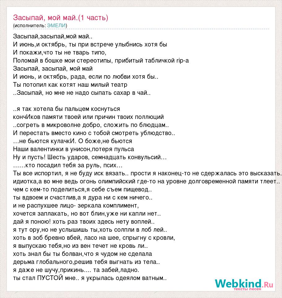 А как ты думаешь, о чем песня "Засыпай, мой май.(1 часть)" ?