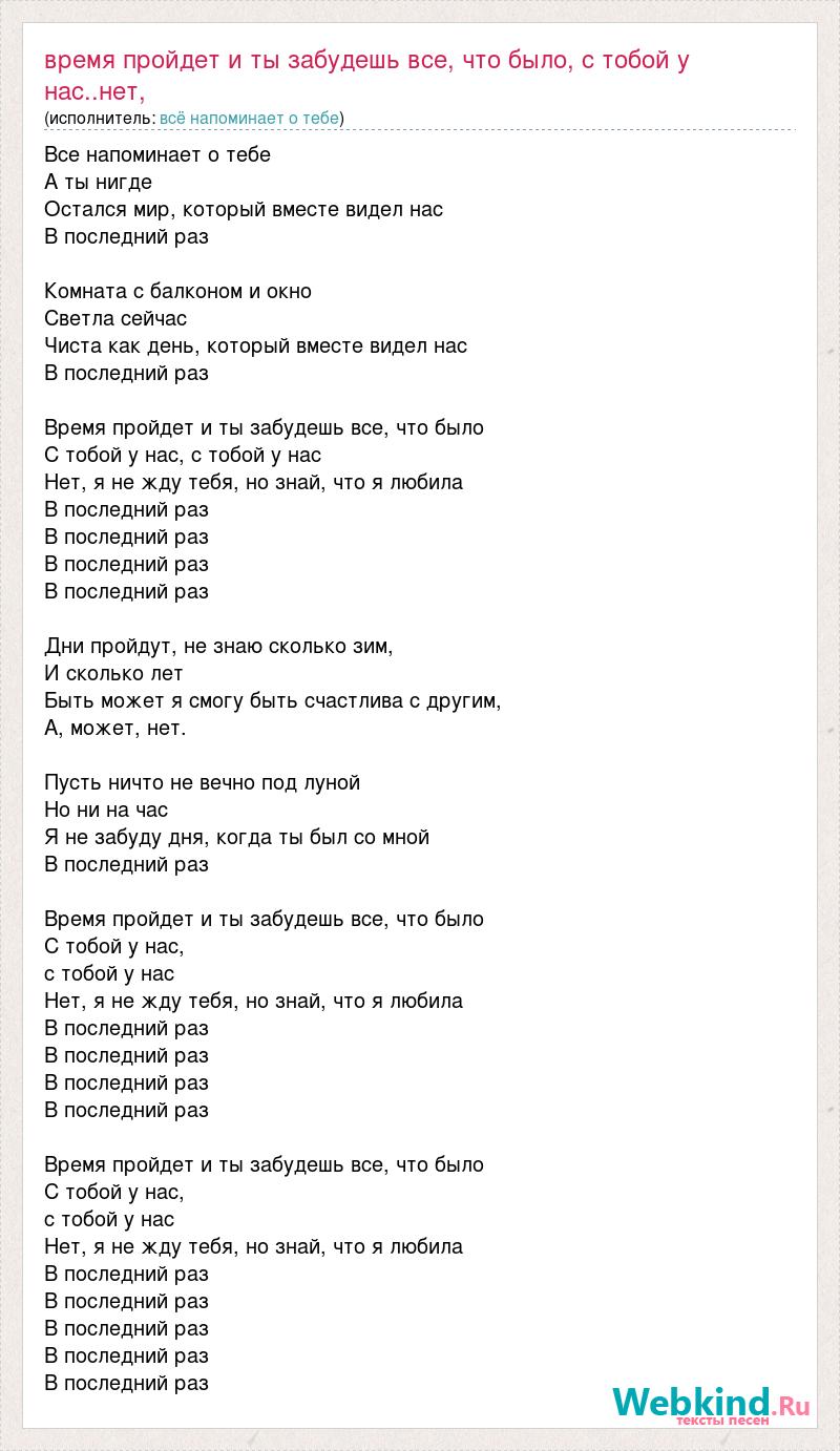 Время пройдет и ты забудешь все, что было, с тобой у нас..нет, я не жду