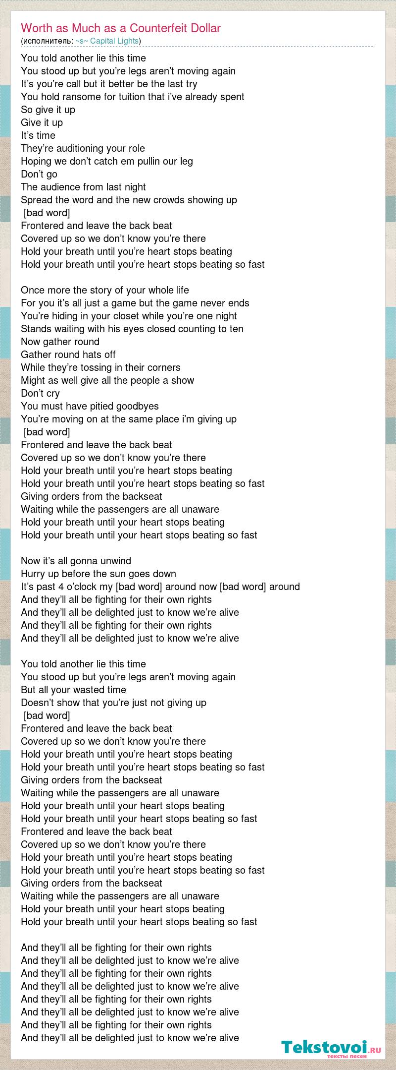 А как ты думаешь, о чем песня "Worth as Much as a Counterfeit Dollar" ?