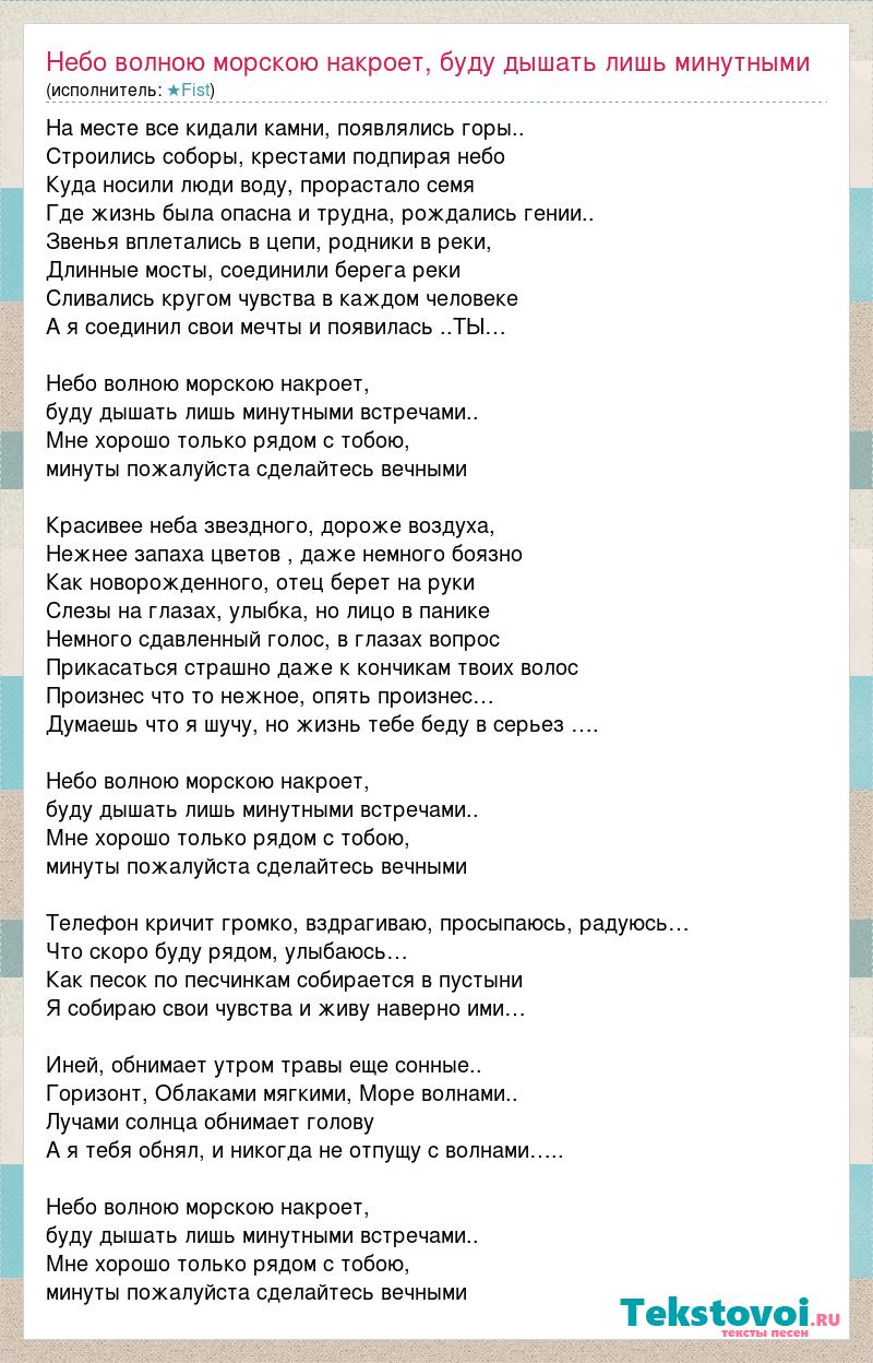 Главная→Исполнители→★Fist→Небо волною морскою накроет, буду дышать лишь минутными встречами.. Мне хо