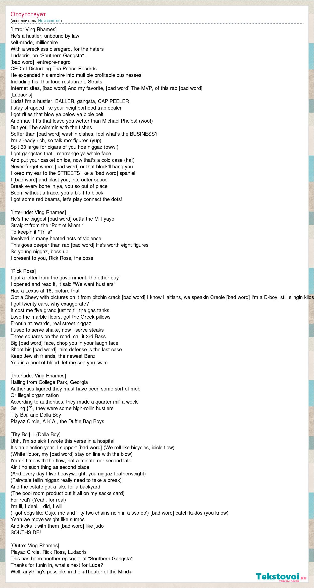 А как ты думаешь, о чем песня "[Intro: Ving Rhames]" ?