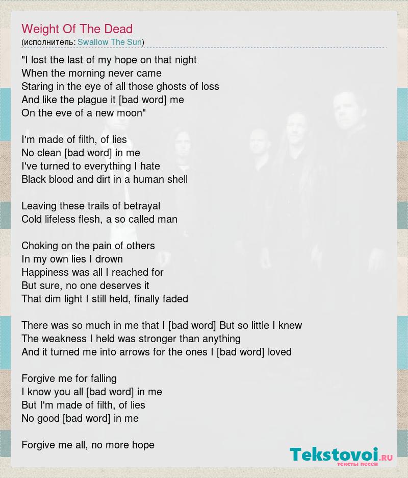 А как ты думаешь, о чем песня "Weight Of The Dead" ?