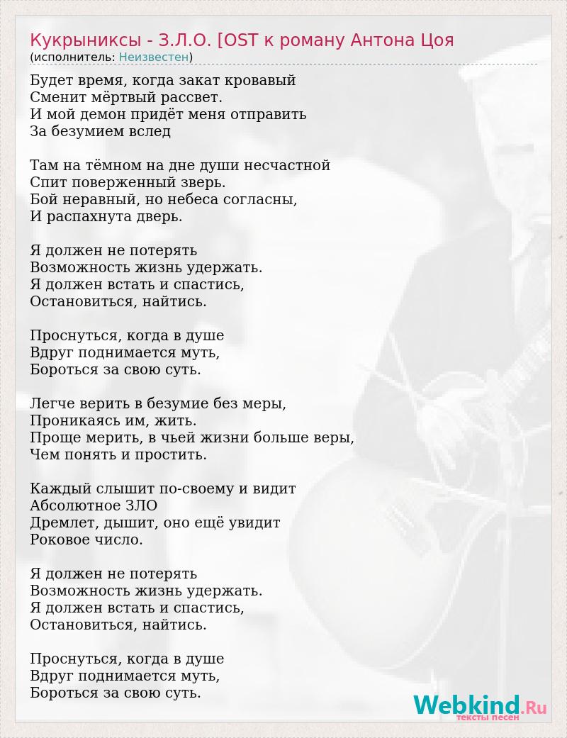 А как ты думаешь, о чем песня "Кукрыниксы - З.Л.О. [OST к роману Антона Цоя" ?