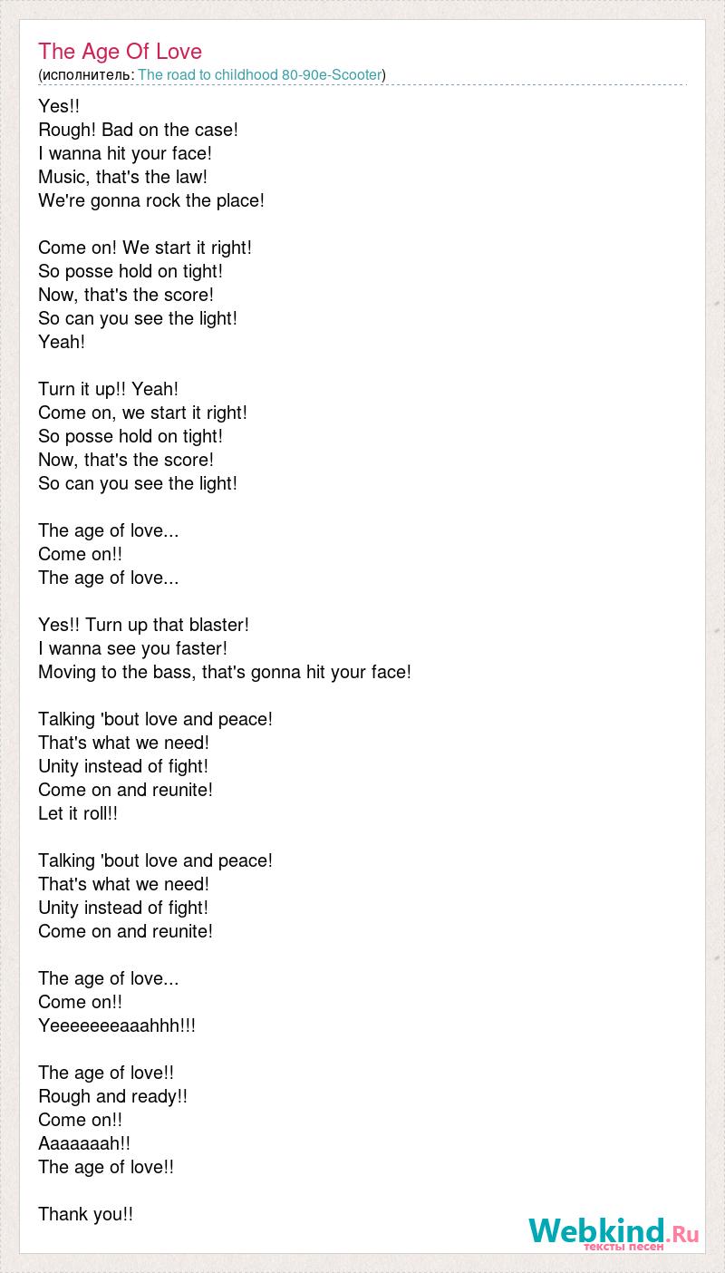 Yes!! Rough! Bad on the case! I wanna hit your face! Music, that's the law! We're gonna rock the place! Come on! We start it right! So posse hold on tight! Now, that's the score! So can you see the light! Yeah! Turn it up!! Yeah! Come on, we start it right! So posse hold on tight! Now, that's the score! So can you see the light! The age of love... Come on!! The age of love... Yes!! Turn up that blaster! I wanna see you faster! Moving to the bass, that's gonna hit your face! Talking 'bout love and peace! That's what we need! Unity instead of fight! Come on and reunite! Let it roll!! Talking 'bout love and peace! That's what we need! Unity instead of fight! Come on and reunite! The age of love... Come on!! Yeeeeeeeaaahhh!!! The age of love!! Rough and ready!! Come on!! Aaaaaaah!! The age of love!! Thank you!!