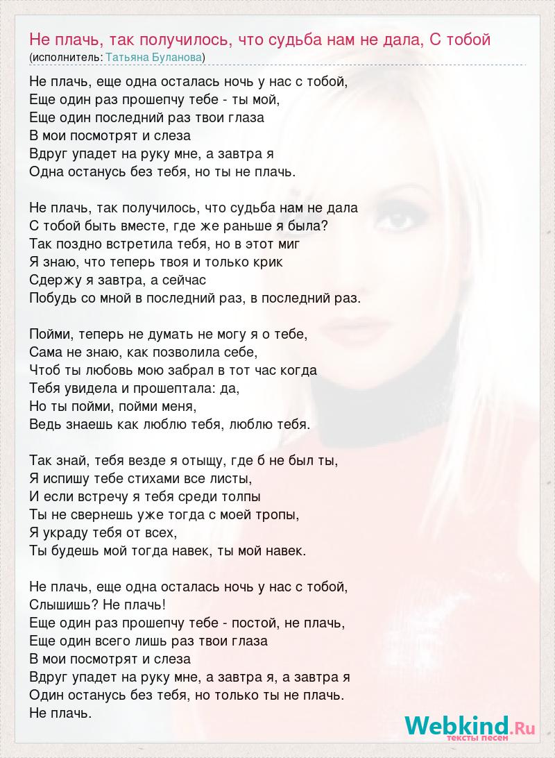 Главная→Исполнители→Татьяна Буланова→Не плачь, так получилось, что судьба нам не дала, С тобой быть вместе, г