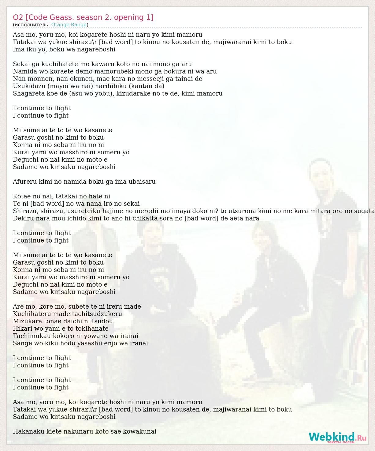 А как ты думаешь, о чем песня "O2 [Code Geass. season 2. opening 1]" ?
