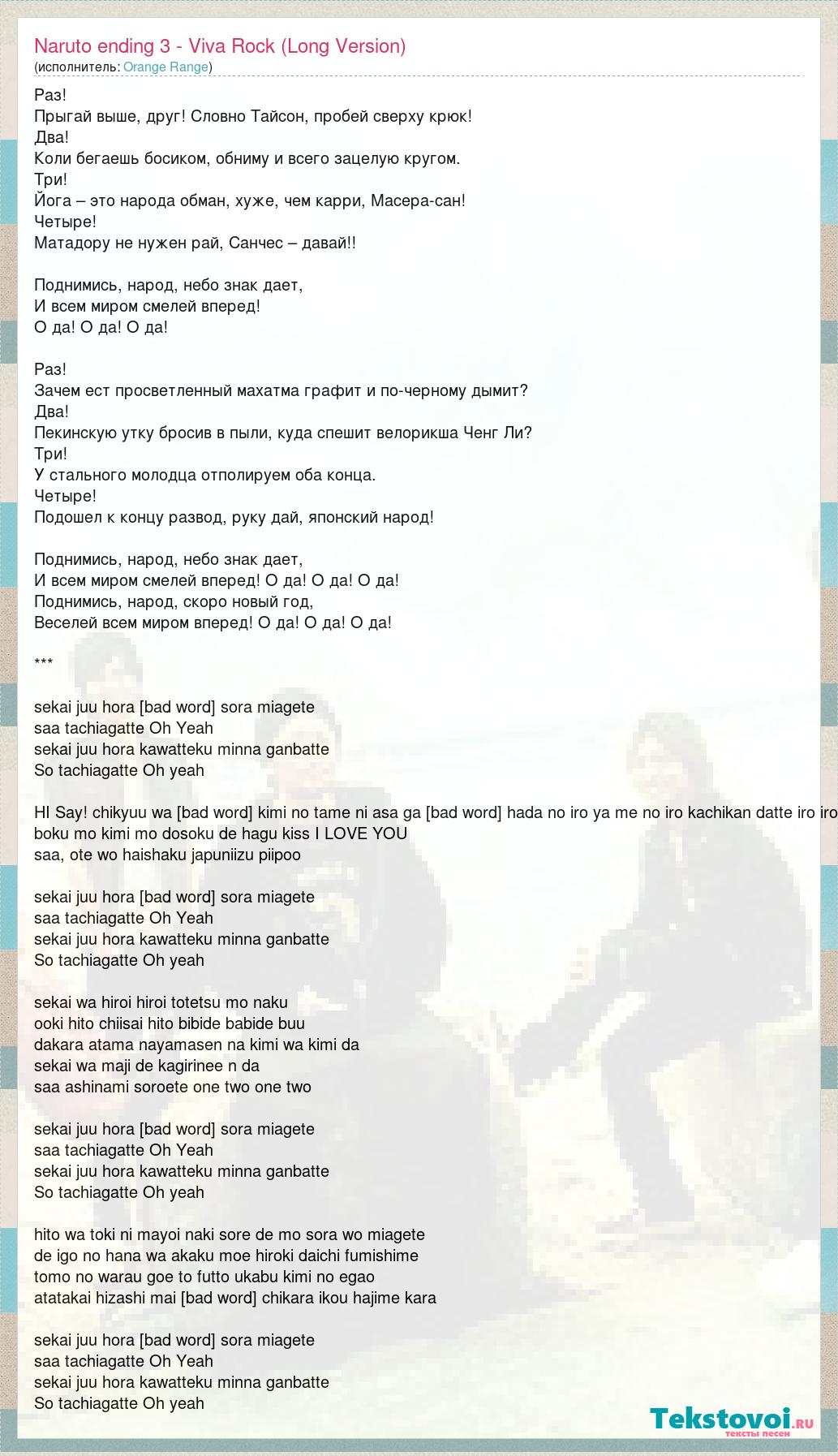 А как ты думаешь, о чем песня "Naruto ending 3 - Viva Rock (Long Version)" ?