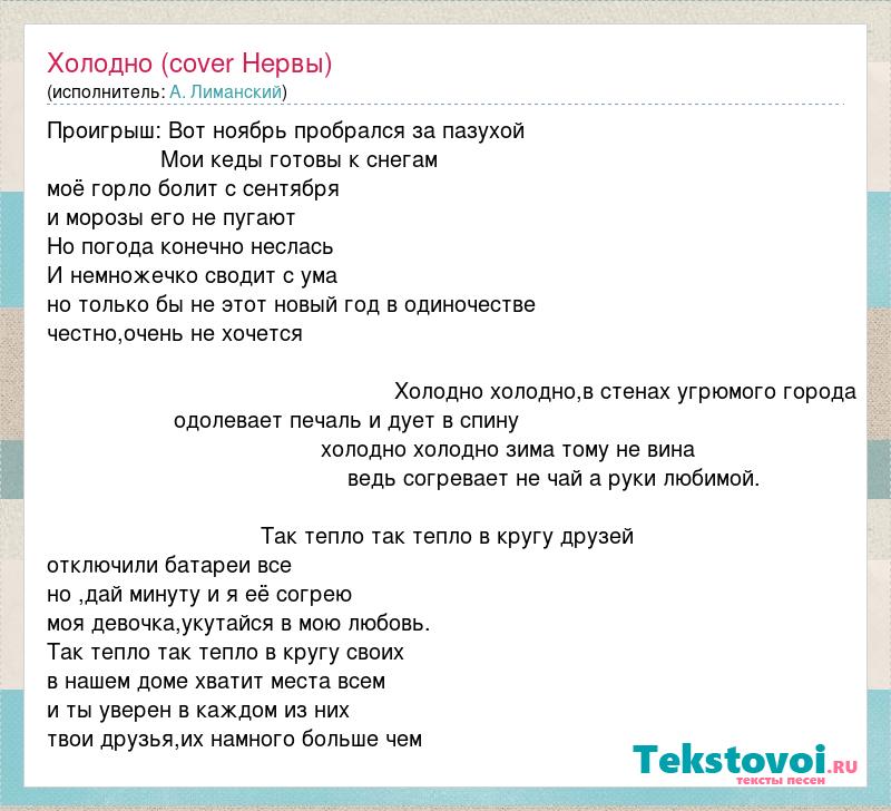 А как ты думаешь, о чем песня "Холодно (cover Нервы)" ?