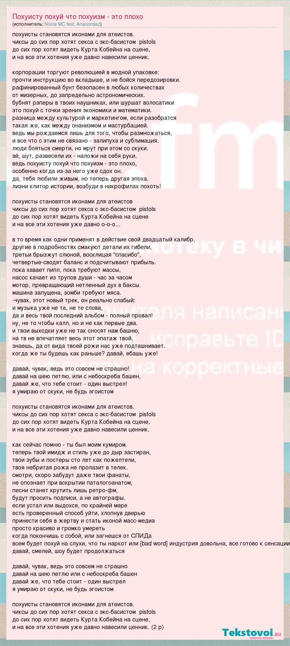 ЭТИ ТЭГИ НЕПРАВИЛЬНЫ!!!!!!Правильный тэг:Noize MC - Похуисты (feat. Anacondaz)