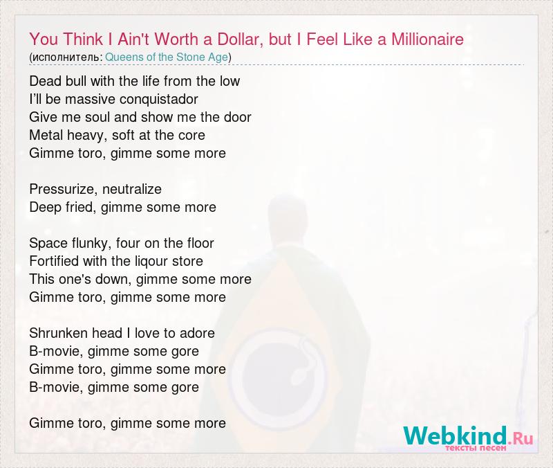 Главная→Исполнители→Queens of the Stone Age→You Think I Ain't Worth a Dollar, but I Feel Like a Millionaire