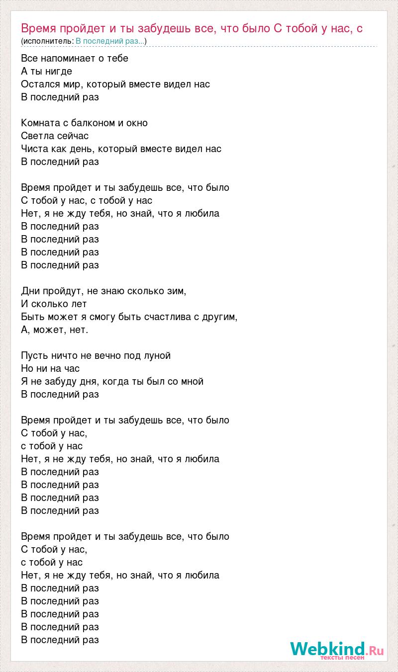 Время пройдет и ты забудешь все, что было С тобой у нас, с тобой у