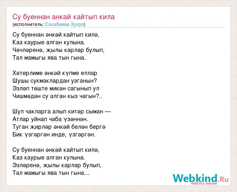 А как ты думаешь, о чем песня "Су буеннан анкай кайтып кила" ?