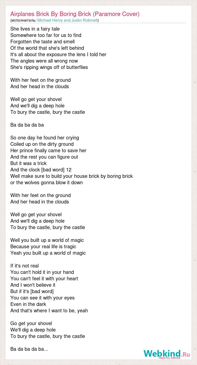 А как ты думаешь, о чем песня "Airplanes Brick By Boring Brick (Paramore Cover)" ?