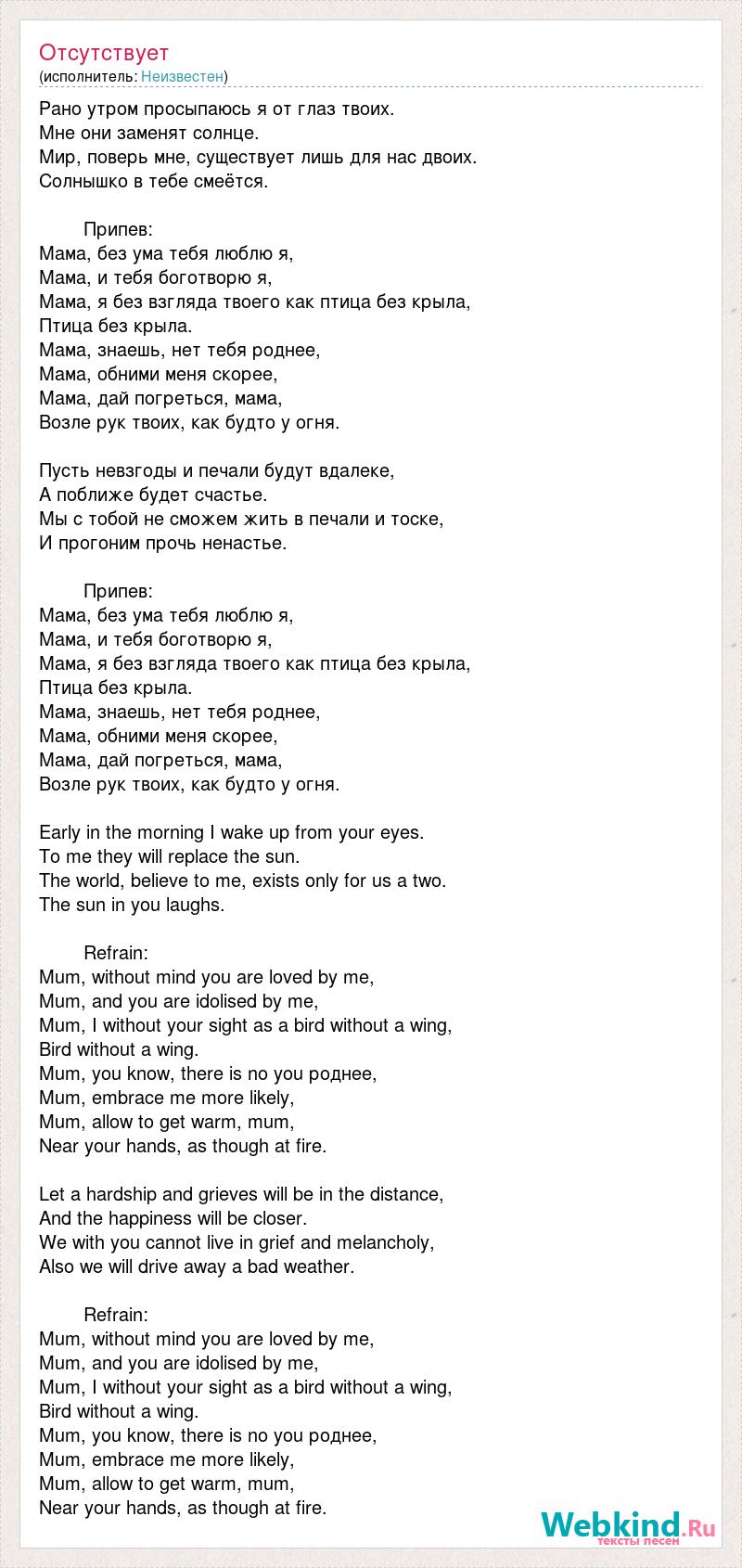 Мама, я без взгляда твоего как птица без крыла,