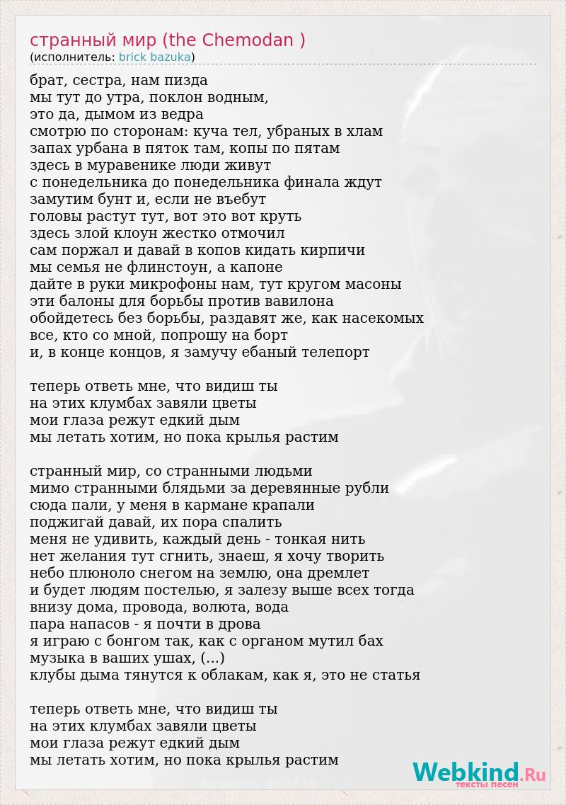 А как ты думаешь, о чем песня "Странный мир (the Chemodan )" ?